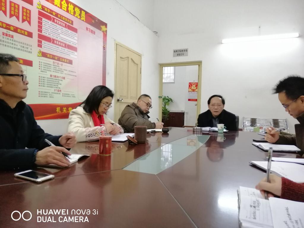 邱房贵副校长围绕学校“评估年、改革年”中心任务对财务处2019年工作提出了具体要求:1、加强学习贯彻全国、全区教育工作大会精神和要求,围绕学校“评估年、改革年”中心任务,根据学校的统一部署,制定好本单位、本部门的工作计划,列出工作清单,不折不扣落实各项任务。2、团结是开展工作的基础,财务处与学校其它部门、财务处内部各科室、上下级之间都要搞好团结。3、依法办事,做事情要习惯于找依据,做到讲政策性、法规性。4、要做好协调工作,在工作上与其他部门多进行沟通。5、防止工作失误,在工作中要有计划性、前瞻性,要想到不利的、困难的因素。6、财务处作为一个服务窗口,要提高财务服务能力,面对教职员工、学生提出的疑问要做到耐心解答。7、在不断提高服务质量的同时也要提高工作效率,又好又快地推进今年各项工作。8、认真履行一岗双责,提高思想认识,利用各种党建活动和平台,加强行政效能建设。